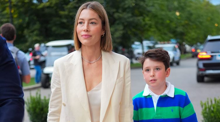 Джессика Бил наслаждается общением со своим сыном Сайласом Тимберлейком , поскольку они вдвоем отправились на теннисный вечер на Открытый чемпионат США по теннису в Нью-Йорке.